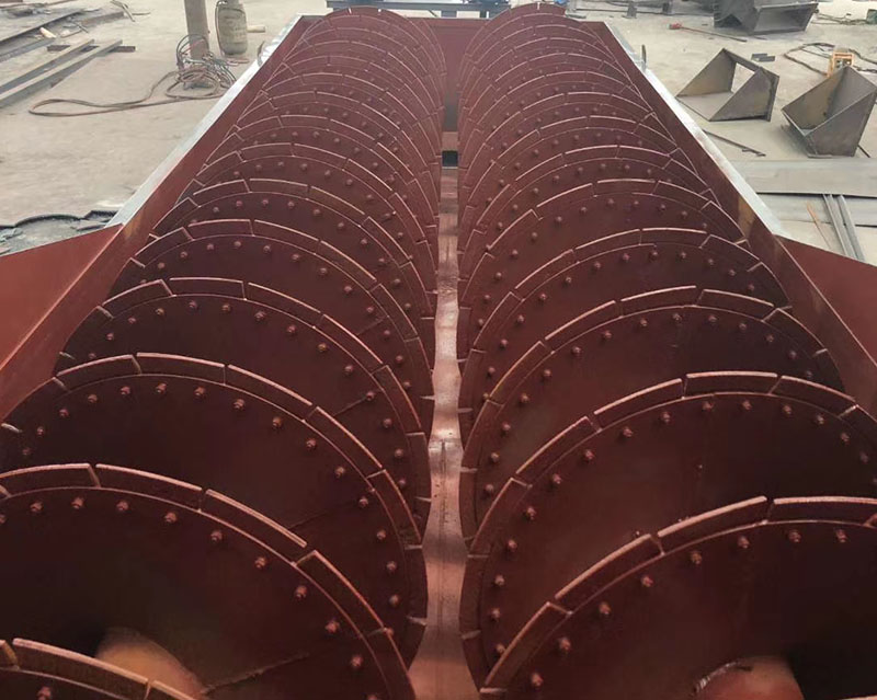 螺旋洗砂机可清洗分离砂石中的泥土和杂物,其新颖的密封结构、可调溢流堰板、可靠的传动装置,确保清洗脱水的效果。广泛适用于公路,水电,建筑等行业的洗选、分级、除杂,以及细粒度和粗粒度物料洗选等作业,对建筑和筑路用砂石尤为适宜。螺旋洗石机用于建筑工地、砂石厂、预制厂及水电工地大量用砂石的脱泥、筛选作业,也可用于矿石选别作业。能有效处理0-30mm以内的物料,可把物料上的泥土、灰粉,分洗成清洁的物料。本机结构简单,维修容易,洗选效率高等优点。螺旋洗砂机又分为双螺旋和单螺旋。 双螺旋洗石机相比于单螺旋洗沙机具有效率高,产量大等特点,能处理0-30mm以内的物料。