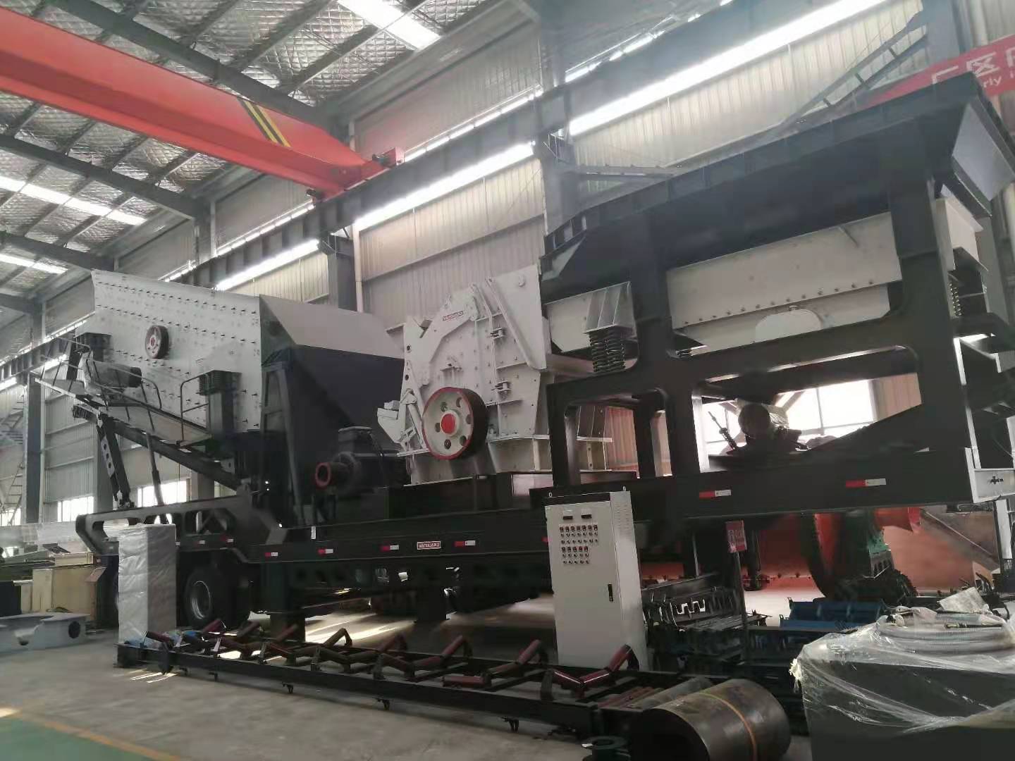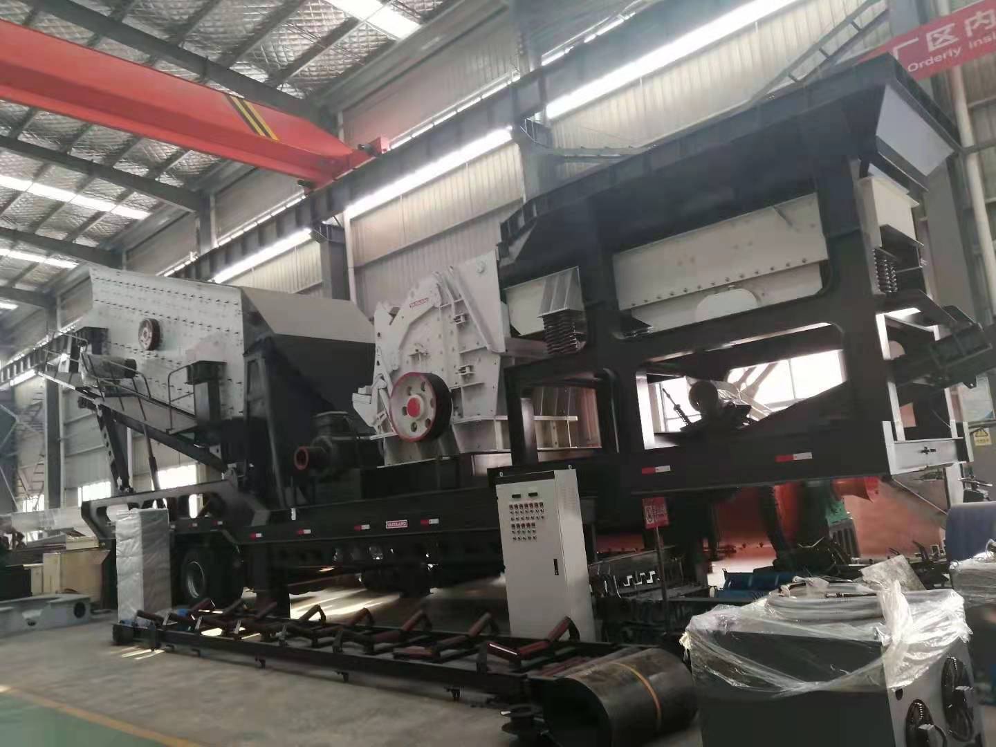 3.大破碎比粗碎移动破碎机配有高质量的颚式破碎机和反击式破碎机主破碎设备,可以破碎坚硬、强磨蚀性物料,破碎比大。